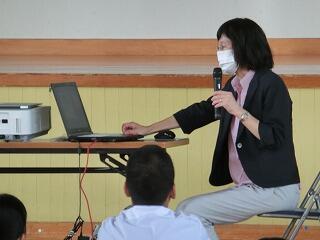 学校薬剤師の方に学年毎に薬物乱用防止教室を実施しています。発達段階に応じて講話していただいていますが、今回は1年生にタバコの影響について話していただきました。クイズ形式で楽しく正しい知識を学ぶことができました。