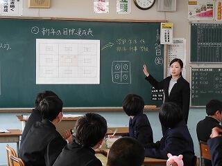本日6時間目に、1年3組で学級活動の研究授業(初任研)を行いました。授業は1年3組の皆さんが1・2学期を振り返って、今年の目標を考えシート(大谷翔平選手が使っていたマンダラチャート)に書き込む内容でした。1年生はもうすぐ2年生になりますが、授業態度や給食時間マナー・清掃への取組など、どんどん成長しています。4月に入学してくる新入生の見本となるような2年生になってほしいと思います。本年度の研究授業も残りわずかになってきました。甲斐先生、御苦労さまでした。参観してくださった先生方、ありがとうございました。