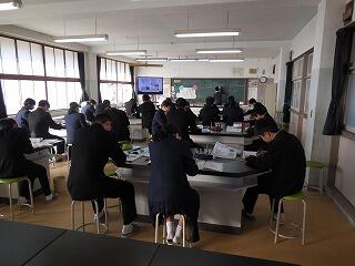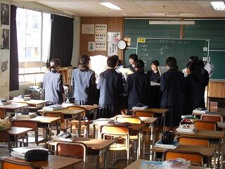本日は午後に総合的な学習の時間があります。1年生は(高校等)調べ学習及び発表内容のまとめ、2年生は2月1日(土)に予定されている立志式の準備・リハーサル等、3年生は間近に迫った高校入試への準備学習等が行われます。また、今日はALTのチャック・シオン先生、スクールカウンセラーの染矢先生も来校されています。本日はインフルエンザの罹患者が11名となっています。無理して登校し早退する生徒が増えています。保護者の皆様には、お子さんの体調がすぐれない場合は、早めの病院受診をお願い致します。