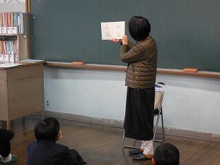 本日朝自習の時間に、今年最後の読み聞かせが3年生を対象に実施されました。1組は古典落語「寿限無」等、2組は素話で「はな」、「若返りの水」、絵本で「おまえうまそうだな」、3組は絵本で「エゾオオカミ物語」、「花さき山」、「ともだちや」を読んでいただきました。朝のお忙しい中、読み聞かせをしていただいたゆめの宅急便・卒業生保護者の皆様、ありがとうございました。また、今日はピンチヒッターで、本校の先生が3年1組の読み聞かせをしてくださいました。ありがとうございました。年明けは1月14日(火)に読み聞かせが計画されています。