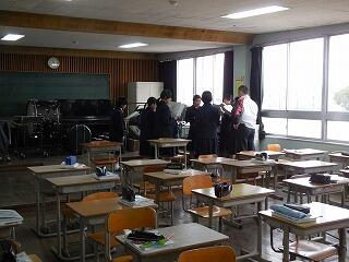 本日朝のあいさつ運動は、吹奏楽部の皆さんが行ってくれました。また、朝自習の時間には、1年生を対象に読み聞かせが実施されました。1組は「ねずみのよめいり」「羽田の水舟」「ともだちや」、2組は「てぶくろ」「ゆきがたくさんつもったら」「ちいさなはくさい」「こんこんさまにさしあげそうろう」、3組は「じゃない!」「ぜつぼうの濁点」「だいじょうぶだいじょうぶ」を読んでいただきました。朝のお忙しい中、読み聞かせをしていただいたゆめの宅急便・卒業生保護者の皆様、ありがとうございました。次回は1月28日(火)、2年生を対象に読み聞かせが計画されています。よろしくお願いします。午後は、音楽の初任研指導のため岩村先生(岡富中)が来校されました。また、今日から「全ての学校に新聞を」運動で、全クラスに新聞(3学期は読売新聞)が配付されています。他に今週は清掃徹底週間・校内安全点検集会にもなっています。無言・気づきの清掃の徹底や校内危険箇所の発見と対応などをしっかり行っていきたいと思います。