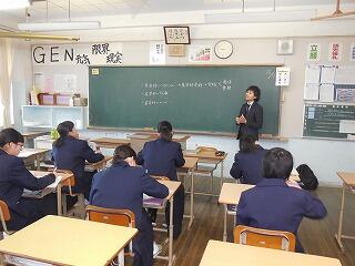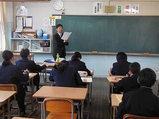 本日3時間目にふるさと教育推進事業「子どもたちに伝えたいこと」が、1年生を対象に実施されました。この事業は、各講師の皆様の講話を通して、働く意義や目的を考え自分の生き方や将来について自覚することをねらいとして行われています。今回の講師は、千徳酒造社長の門田賢士様、旭化成メディアカルの清水将也様、延岡市役所の男女参画室専門主事の佐藤純子様でした。各分野で活躍しておられる講師の皆様の貴重な講話を聴くことができました。また、市教委から学校支援アドバイザーで前校長の神崎勝久先生に来ていただきました。皆様、お忙しい中ありがとうございました。
