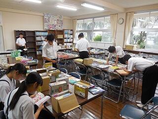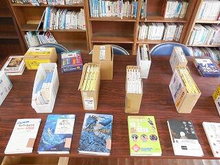 本日昼休み、図書室においてホルプ九州の吉田様による本の展示が行われました。最新の本が並べられ、生徒が手にとって読んでいました。