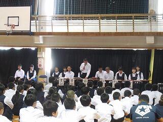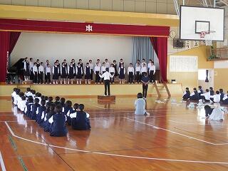 先日、3年2組が音楽室において、先生の御指導の下合唱練習を行っていました。本校を代表として小中音楽祭に参加する3年2組の皆さんには、是非、頑張って欲しいと思います。