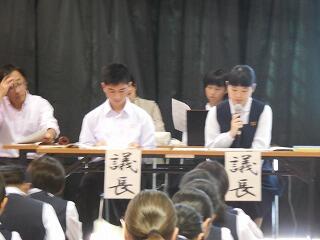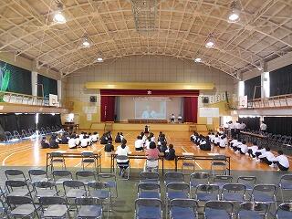 本日午後、生徒総会が開催されました。総会では主に令和元年度後半から令和2年度前半の生徒会活動方針についての審議がされました。スローガンは今回の総会を受けて、中央委員会でこれから検討し決定されますが、生徒会重点目標は「いじめのない学校」、「あいさつが印象に残る学校」、「地域に貢献する学校」に決定しました。また、各専門委員会の目標や重点取り組み事項も承認されました。今後、生徒会活動は新役員の皆さんが主となって活動していきますが、会員であるすべての生徒の皆さんの協力が欠かせないものとなります。総会の最後は、全員でいじめ撲滅三ヶ条を復唱しました。生徒一人一人が活躍できる学校になるように、生徒会活動を今後も応援してきたいと思います。旧生徒会役員の皆さん、お疲れまでした。新生徒会役員の皆さん、よろしくお願いします。
