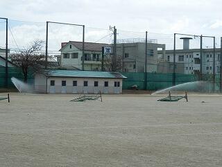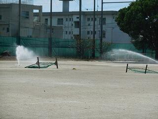 台風19号の影響で昨夜から強い風が延岡市一帯に吹いています。そのため朝からスプリンクラーを稼働させていますが、学校周辺の皆様には大変ご迷惑をおかけしています。強風が治まるまで、散水を継続して参りますので、御理解を申しあげます。
