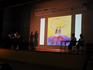10月13日(日)に開催される文化発表会のスローガンが生徒会から発表されました。当日は英語暗唱・弁論、各学年の発表、展示、各クラスによる合唱コンクール、吹奏楽演奏などがあります。また、閉会式後には新生徒会役員の任命式も行われます。保護者の皆様には是非、ご来場いただきますようお願い致します。