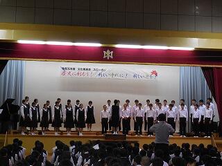 本日午前9時から令和元年度延岡中学校文化発表会が開催されています。午前中は英語暗唱・弁論、2年生の発表、1年生の発表、合唱コンクールが行われました。どの発表もこれまでの準備の成果を遺憾なく発揮し素晴らしい発表となっています。午後は吹奏楽部の演奏、3年生の発表、閉会式が行われます。また閉会式後に新生徒会役員の任命式が行われる予定です。