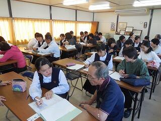 説明では、今年度の入試から宮﨑学園高等学校は、英検・漢検・数検等の3級以上の取得者に対して、推薦・一般を問わずに受験料(1万円)を全額免除にしたことなどを説明して下さいました。他にも学校の様子や特別奨学制度等について説明していただきました。今年、宮﨑学園高等学校は創立80周年を迎えるそうです。宮崎学園高校は運動部に加えて合唱部も来月Nコンに出場する等、部活動の大変盛んな学校でもあります。藤原先生、いつも県北に来ていただきありがとうございます。