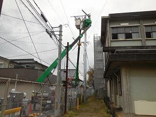 本日、工事の一環として、第3棟付近でクレーン車による機材の搬入、電柱設置工事等が行われています。工事は11月まで続きます。ご注意ください。