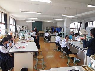 今日は2年3組の理科の授業で豚の目の解剖がありました。新しく改修された理科室で生徒は興味を持って取り組んでいました。夏休みに理科室の改修をしていただき大変よい環境の中で授業はできています。また、水泳の授業も本日で終了となります。体育大会を5月に実施していることから、水泳の授業を6週間にわたって進めることができています。秋が少しずつ深まってきています。生徒の皆さんには、学習やスポーツにさらに打ち込んでほしいと思います。