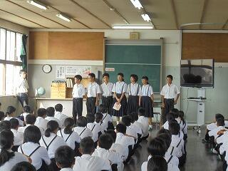 また、養護教諭の先生より保健面について熱中症対策とガンについて、生徒指導の先生から生活面について緊張感をもって学校生活を送りルールを守り、受検に向けて志気を高めましょうという話がありました。最後に学年の先生からどんな些細なことでも一生懸命に行えば、将来自分の役に立つとのお話をしていただきました。