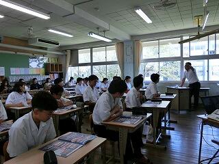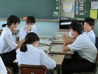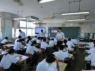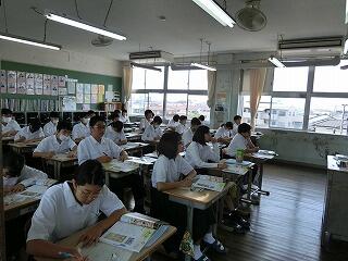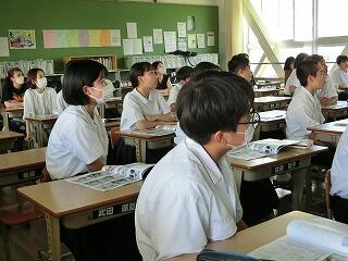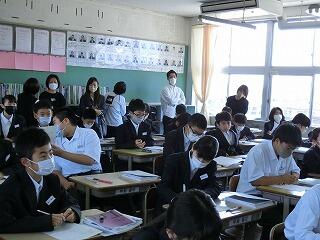 1年生も入学して1か月が過ぎようとしています。少しずつ学校の生活にも慣れてきました。他学年の生徒たちも授業に集中しています。3年の授業では、全員が手を挙げて答えようとしています。