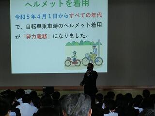 延岡警察署から講師を招き、自転車の安全な乗り方や交通ルール・標識の見方について、お話をしていただきました。