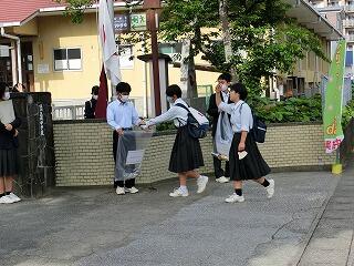 毎月1回実施している生徒会行事「クリーンウォークディ」です。朝の登校時間の通学路のゴミ拾い活動です。