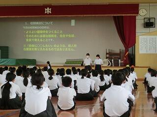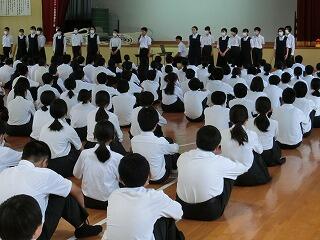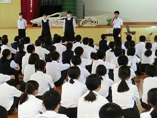 生徒会が実施するさまざまな集会が実施されています。1年生にも早く中学校生活に慣れて欲しいということから実施される集会です。