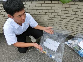 毎月1回、登校時間に通学路のゴミ拾いを実施しています。生徒会が前日に放送で呼びかけています。あいさつ運動と兼ねて月1回の恒例行事になっています。
