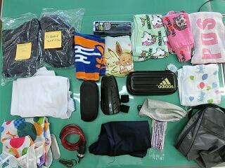 落とし物係からのお知らせです。1学期の落とし物を預かっています。心当たりのある方は、学校までご連絡ください。