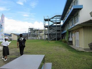 次に避難です。本校は、耐震工事も完了していることから、中校舎校舎3階に避難します。