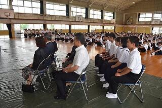 栗田彰子先生のご遺族の方も参加され、生徒に向けて平和の