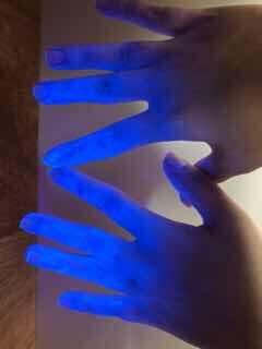 ◇きれいになったはずの手を特殊なライトで照らすと・・・