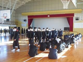 本日は水曜校時の5時間授業です。今日は生徒会の呼びかけで地域のゴミを拾って登校するクリーンウオークデーです。15時以降に生徒の皆さんは下校となります。2時間目に1年生数学の研究授業を行います。15時55分から方財小学校において、新年度入学予定の児童・保護者の皆様を対象に制服等の説明を行います。