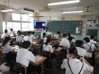 (下、本校においてもタブレットを使用した授業が始まりました)