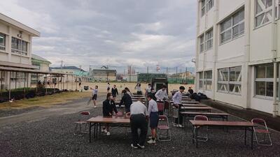 本日は、参観日・PTAバザーの日でした。今日は寒い日となりましたが、多くの保護者の方に授業を参観していただきました。ありがとうございました。バザーも大盛況でした。子どもたちも外での食事を楽しんでいました(寒くて凍えましたが)。これまで、バザー委員の皆様、PTA役員の皆様、駐車場整備にご協力いただいた皆様、ボランティアの生徒の皆さん、バザーをご利用いただいた皆様、ご協力に感謝申しあげます。