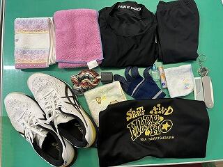 今学期の学校での落とし物についての連絡です。写真に写っているものが持ち主不明のものです。該当のものがありましたら、学校まで御連絡ください。