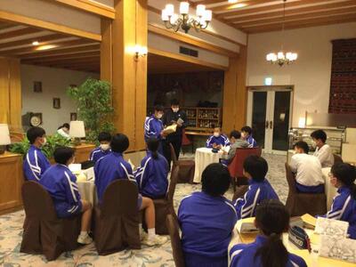 各班の班長が集合して、1日の反省と明日の連絡をしています。