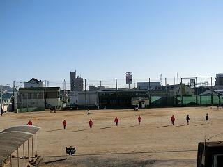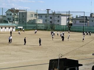 ★風は冷たいもののとても良い天気です。先生方もグラウンドで生徒たちとサッカーを楽しんでます。
