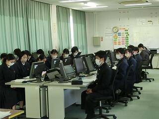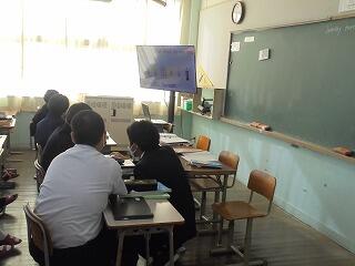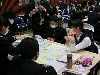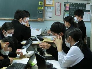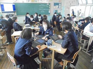 話し合った結果は、コンピュータで整理していきます。生徒同士の活発な話し合い活動が見られました。
