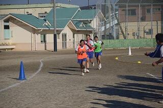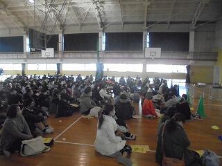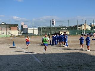 男女1000メートル走の後、各学級選抜を3チーム、社会体育女子駅伝1チームの4チームでタスキをつなぎました。選手以外の応援もあり、盛り上がった大会でした。