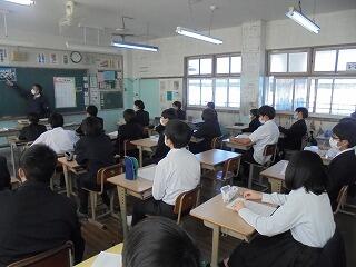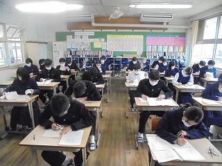 本日は火曜校時の6時間授業です。本日は県立高校一般入試1日目となっています。受験をする3年生の皆さんはこれまでの学習の成果を発揮し、志望校合格に向けて頑張ってほしいと思います。本日の生徒の皆さんの下校予定時刻は16時15分頃を予定しています。