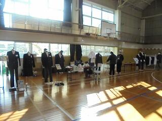 本日は2、3校時に卒業式練習、4、5校時に卒業式準備(2、3年生)が予定されています。本日の生徒の皆さんの下校予定時刻は15時00分頃を予定しています。