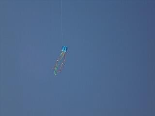 (下、本日の4組の理科の授業の様子です。凧を使い、上空の方が風が強いということを学んでいました。本日は晴天で程良い風もあり、凧が空高くまであがっていました。)