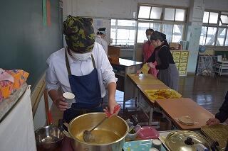 本日の給食のメニューは、ぜんざいでした。中味は、餅ではなく食べやすい「白玉」と「いも餅」でした(写真は反射してうまく撮れませんでした)。1月11日が「鏡開き」であることからの献立です。給食によって日本の昔からある慣習を思い出すことができます。給食の献立を作っていただく栄養教諭の先生に感謝しながら生徒のみなさんも食べていました。