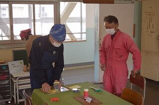 (下、卒業式・入学式の看板を本校技術員を中心に新しく作成しています。本校技術員においては日頃から花壇の花植え等を行っていただき、環境整備に貢献いただいています。いつもありがとうございます。)