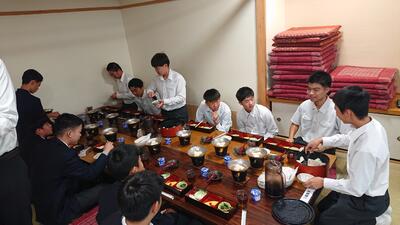 自主研修のあとの夕食は、しっかり学んだ分、よく食べました。明日は最終日。元気に過ごすためにもしっかり寝ます。
