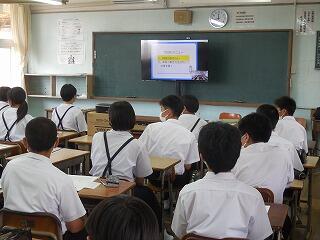 本日は木曜校時の6時間授業です。朝は各学年での集会となります。4~6時間目は論理コミュニケーション遠隔授業の6回目です。2年生は、5・6時間目に6月23日(水)、24日(木)に実施される職場体験学習でお世話になる職場訪問を行います。総合的な学習の時間では、平和学習も行われます。