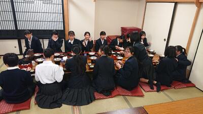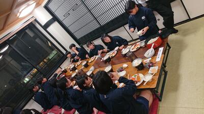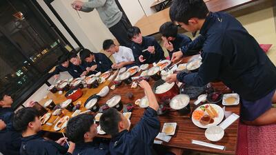 自主研修のあとの夕食は、しっかり学んだ分、よく食べました。明日は最終日。元気に過ごすためにもしっかり寝ます。
