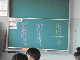 本日は特別時間割の5時間授業です。本日は第2回参観日となっています。保護者の皆様におかれましては、昨日メールにて本日の案内をお知らせしていますのでご確認いただき、来校いただきますようお願いします。
