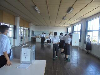 本日は木曜校時の6時間授業です。5、6時間目に生徒会役員選挙が予定されています。本日の生徒の皆さんの下校予定時刻は16時15分頃を予定してます。