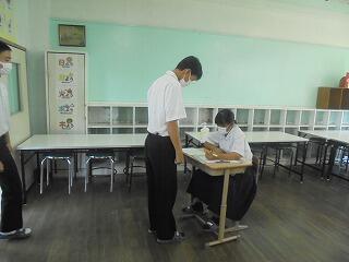 (下、はげまし隊の方々に昼休みの時間を利用してテスト対策の補助をしていただいています。いつも本校の生徒のためにありがとうございます。)