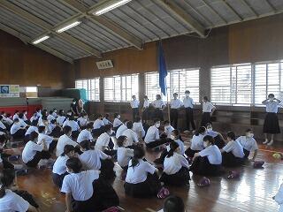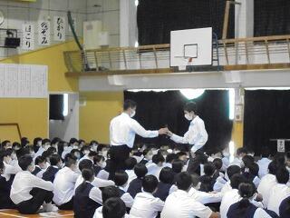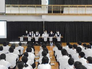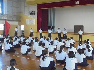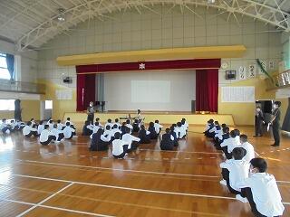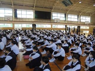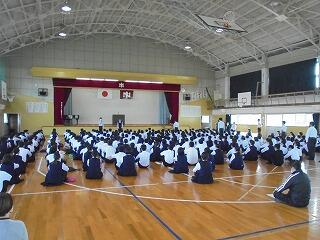 (下、6時間目の激励式の様子です。延岡中学校の代表、延岡市の代表として最後まで諦めずに戦い抜いてほしいと思います。吹奏楽部においては、本日校内でも素晴らしい演奏をしてくれました。本番もこれまで練習してきた成果を存分に発揮し、素晴らしい音色を響かせてほしいと思います。)