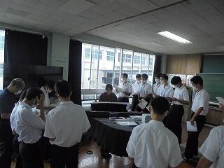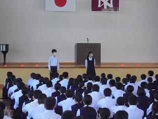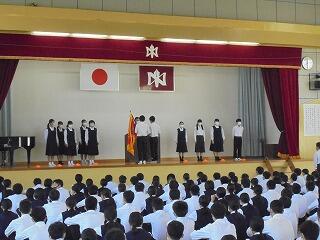 本日は終業の日となっています。本日の終業式は今般の新型コロナウイルス感染症対策、熱中症対策としてリモートで行います。本日の生徒の皆さんの下校予定時刻は12時15分頃を予定しています。なお、明日から夏休みが始まりますが、感染症対策の徹底、事件事故の防止に努めながら有意義に過ごしてほしいと考えています。