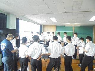 (下、本日の技術員の丸のこ講習会の様子です。本校の技術員室で行われました。)
