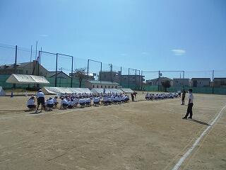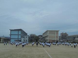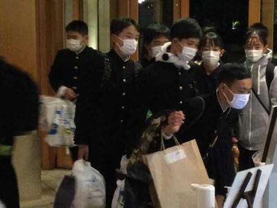 本日は部活動中止で全員下校となります。明日については、市内すべての学校で臨時休業となります。詳しくは本日配付のプリントを御覧ください。よろしくお願いします。