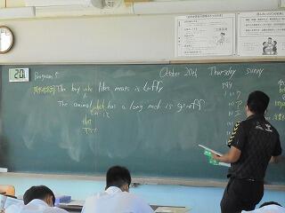 本日は月曜校時の6時間授業です。本日はALTの訪問日となっています。本日の生徒の皆さんの下校予定時刻は15時40分頃を予定しています。