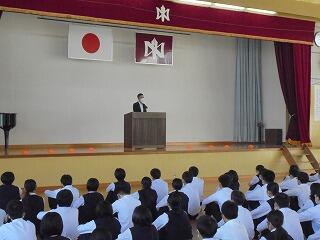 (本日の文化発表会は御来場の皆様方の御協力により、滞りなく終えることができました。お足元の悪い中、お越しいただきありがとうございました。生徒の皆さんも日頃からの練習の成果を十分に発揮し、良い文化発表会になりました。これからの学校生活にこれらの経験を生かしてほしいと思います。本日はありがとうございました。)